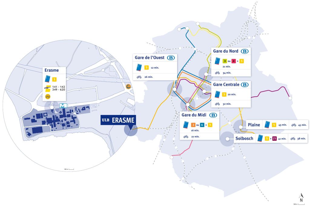 - by metro : line 5 direction Erasme/ Erasmus and get off at Erasme/Erasmus