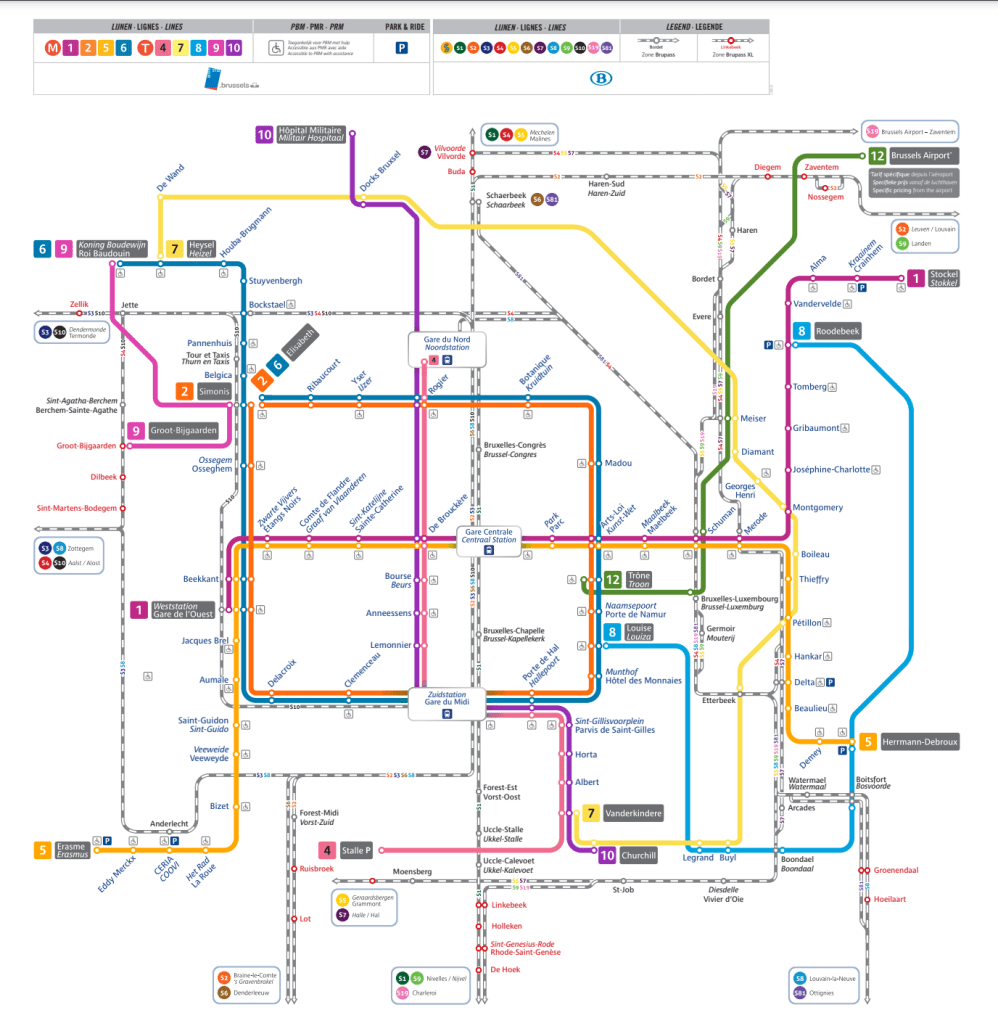 Brussels metro and train map
